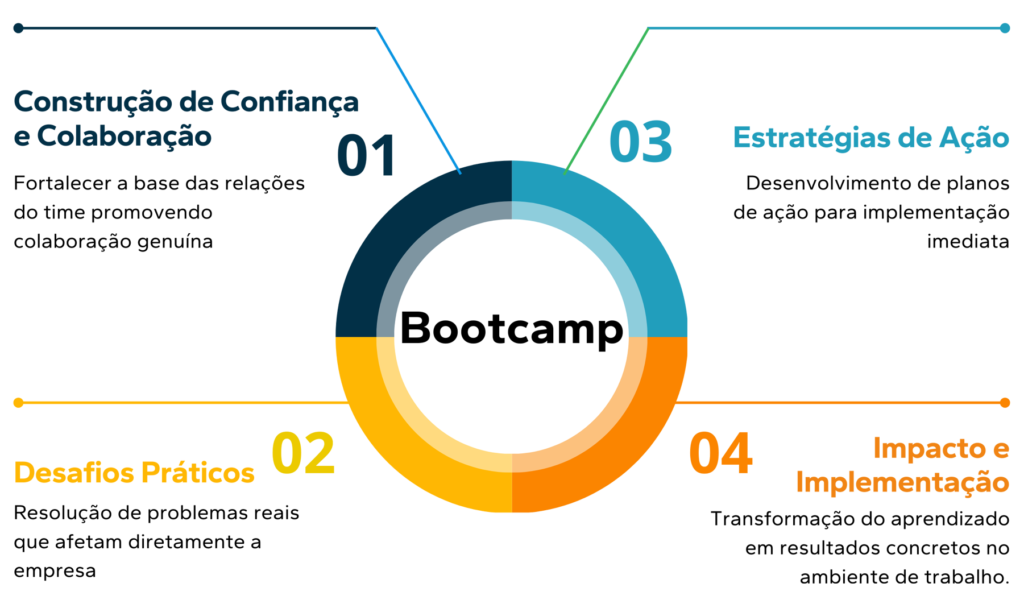 O PLAY Bootcamp é um programa intensivo de treinamento prático, projetado para equipes e gestores que desejam aprimorar suas habilidades em um curto espaço de tempo. Com foco na construção de confiança, colaboração e na resolução de problemas críticos, o Bootcamp oferece uma experiência imersiva que combina aprendizado ágil e desenvolvimento de soluções imediatas para os desafios atuais da empresa.